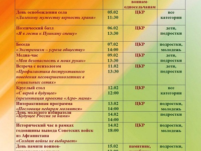Перспективные планы мероприятий