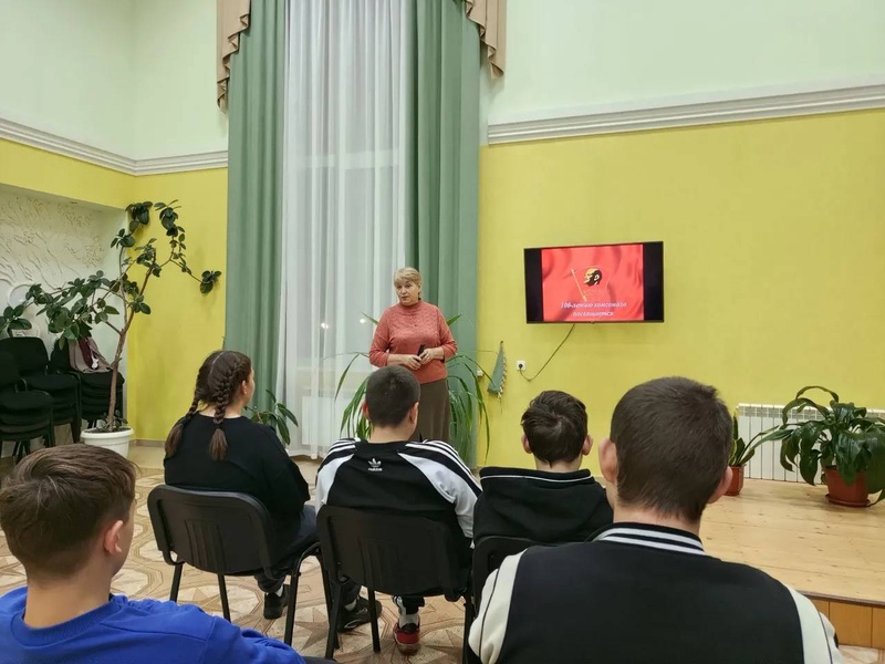Целью данного мероприятия было познакомить современную молодёжь с историей комсомольской организации, об огромном вкладе комсомола в становлении и развитии советского государства, о подвигах комсомольцев в годы Великой Отечественной войны, о прекрасной поре комсомольской юности и трудовых делах. Чтобы погрузиться в атмосферу тех лет, участникам были продемонстрированы комсомольский билет и комсомольский значок. В завершении ребята посмотрели видеофильм «День рождения Комсомола».